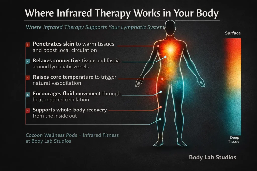 Infrared therapy uses targeted heat energy to support circulation, soothe connective tissue, and create an environment where lymphatic flow may be enhanced all without discomfort. Our infrared fitness equipment and Cocoon Wellness Pods deliver this effect across the whole body, making it one of the most accessible and relaxing ways to complement your lymphatic routine.