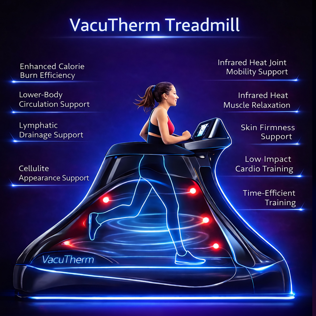 VacuTherm is a next-generation infrared fitness system that combines gentle treadmill walking with two complementary technologies: