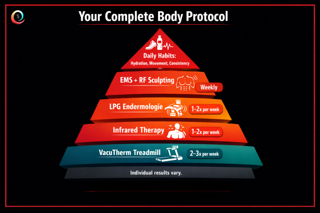 Pairing VacuTherm with the right wellness tools creates a more complete body protocol. Here is how each technology contributes: