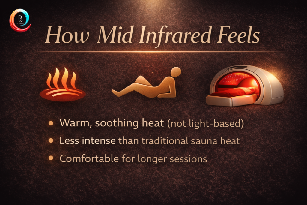 Enhanced blood flow and subtle thermal effects also help soften the feelings associated with stress, such as tight shoulders or a stiff lower back, making mid infrared a useful wellness ally for both active individuals and those with sedentary jobs.