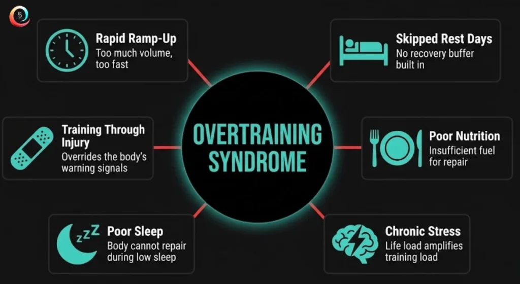 It is worth noting that general life stress, poor sleep, and inadequate nutrition alone do not cause clinical overtraining syndrome, but they do significantly worsen recovery and amplify the effects of physical training loads. If you are already training regularly and adding those stressors on top, the cumulative burden on your body becomes much greater.